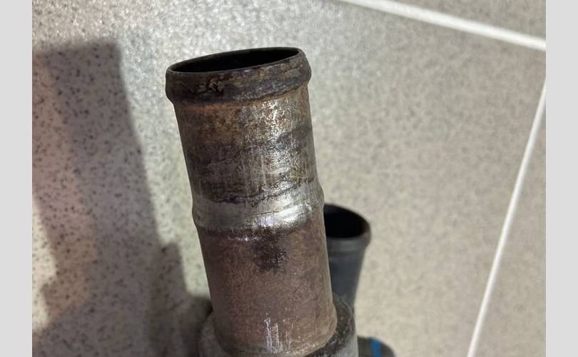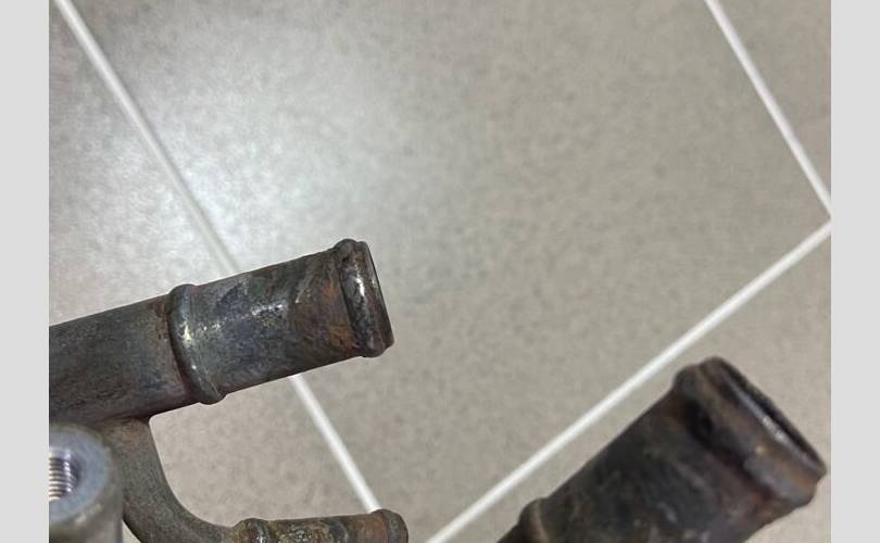Корпус термостата.Разбор Ниссан AD 1999 год (Nissan AD 1999 г.) двс QG15 1.5 л. 105 л. с., АКПП RE4F03B FQ38, передний привод, кузов легковой универсал VFY11, цвет светло-серый, правый руль.