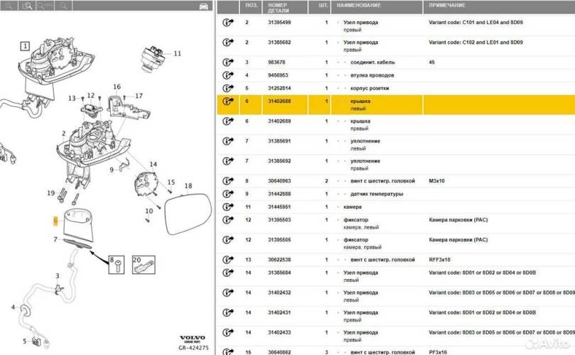 Крышка ножки левого зеркала Volvо хс90 2015-2020 Volvо ХС90 2015-2020
