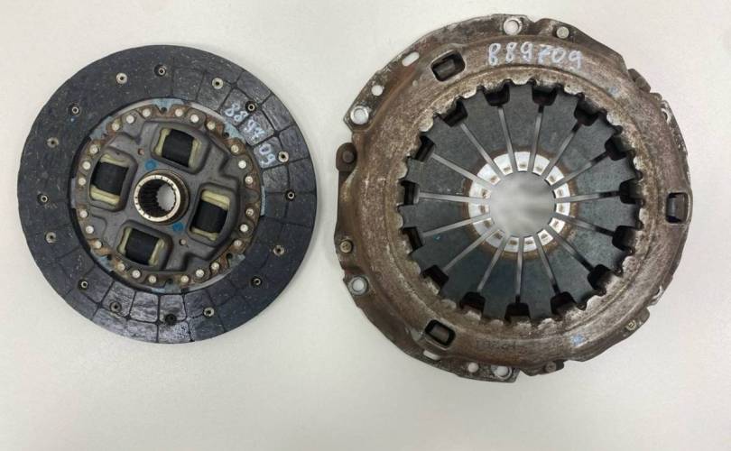 Оригинал. Комплект. Небольшая выработка диска. Деталь демонтирована с автомобиля Toyota Corolla E120 2001-2007. Год выпуска: 2004. Цвет: Серый. Код цвета: 1C3. Привод: Передний. Трансмиссия: Механика. Тип кузова: Седан. Модель двигателя: 3ZZ-FE. Руль: Левый