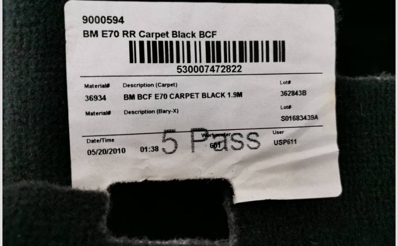 Ковер пола BMW X5 2012 51477252185 E70 N55B30, задний