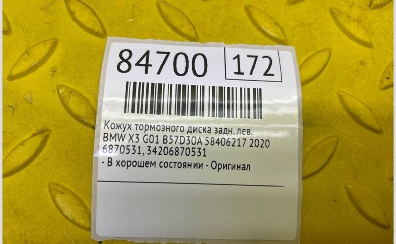 Кожух тормозного диска BMW X3 2020 34206870531 G01 B57D30A 58406217, задний левый