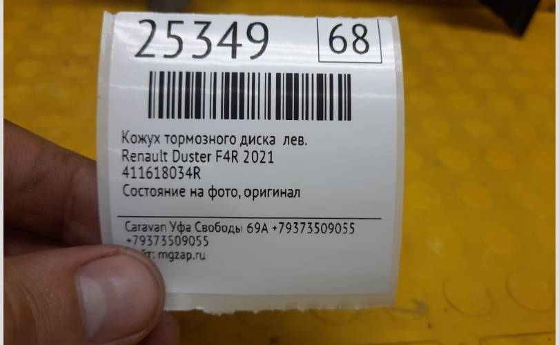Кожух тормозного диска Renault Duster 2021 411618034R F4R, левый