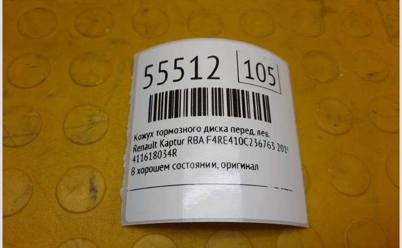 Кожух тормозного диска Renault Kaptur 2019 411618034R RBA F4RE410C236763, передний левый