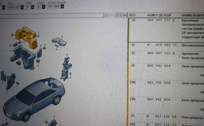 Кpонштейн, кpепление блока Audi A8 d4 3.0 10-17