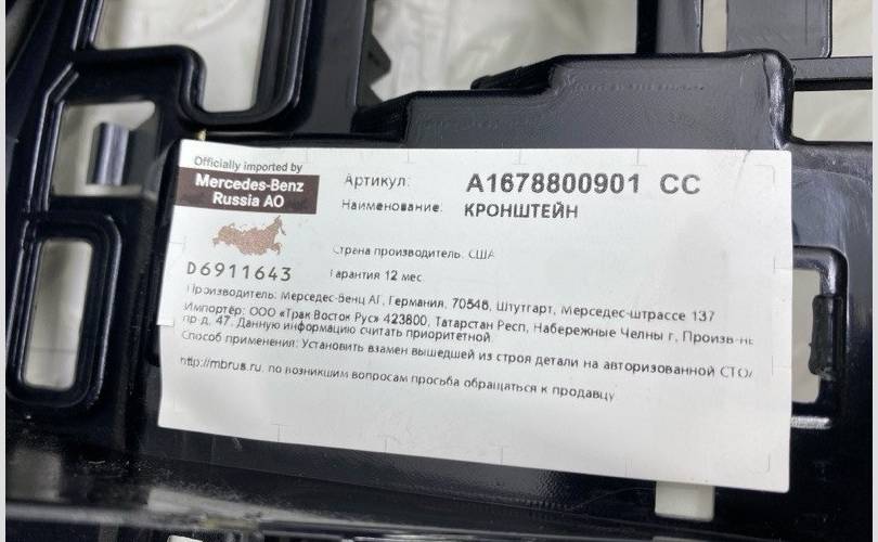 Кронштейн бампера Mercedes-Benz GLS 2024 A1678800901 X167, задний левый