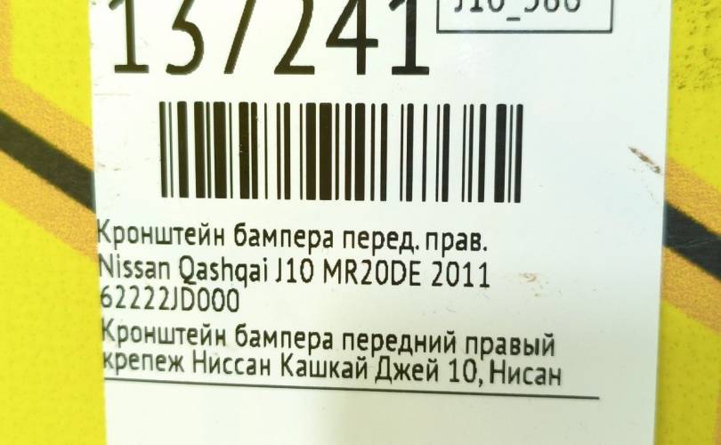 Кронштейн бампера Nissan Qashqai 2007 62222JD000 J10 MR20DE, передний правый