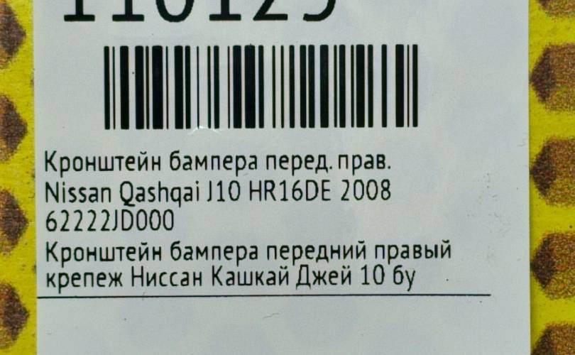 Кронштейн бампера Nissan Qashqai 2008 62222JD000 J10 HR16DE, передний правый