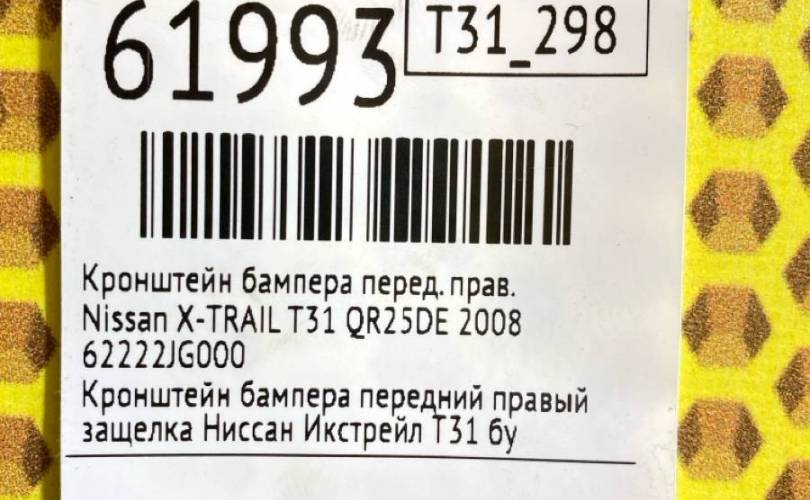 Кронштейн бампера Nissan X-TRAIL 2008 62222JG000 T31 QR25DE, передний правый