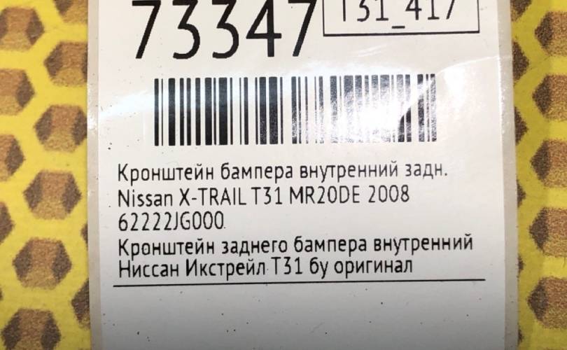 Кронштейн бампера внутренний Nissan X-TRAIL 2008 62222JG000 T31 MR20DE, задний