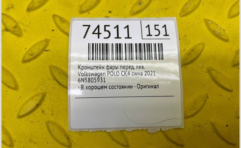 Кронштейн фары Volkswagen POLO 2021 6N5805931 CK4 CWVA, передний левый