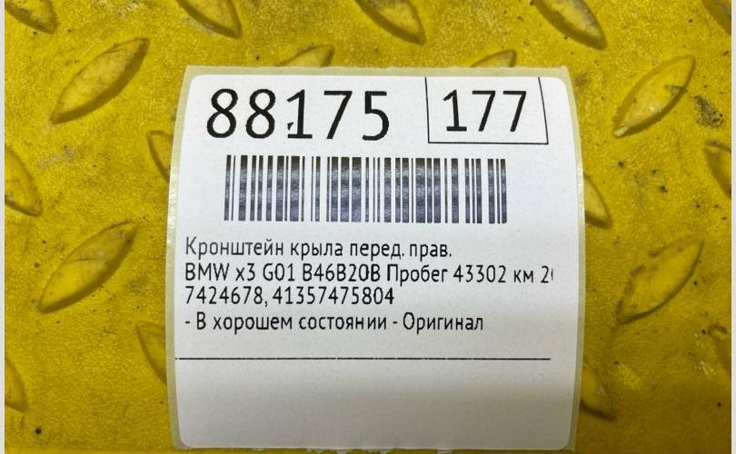 Кронштейн крыла BMW x3 2022 41357475804 G01 B46B20B ПРОБЕГ 43302 КМ, передний правый