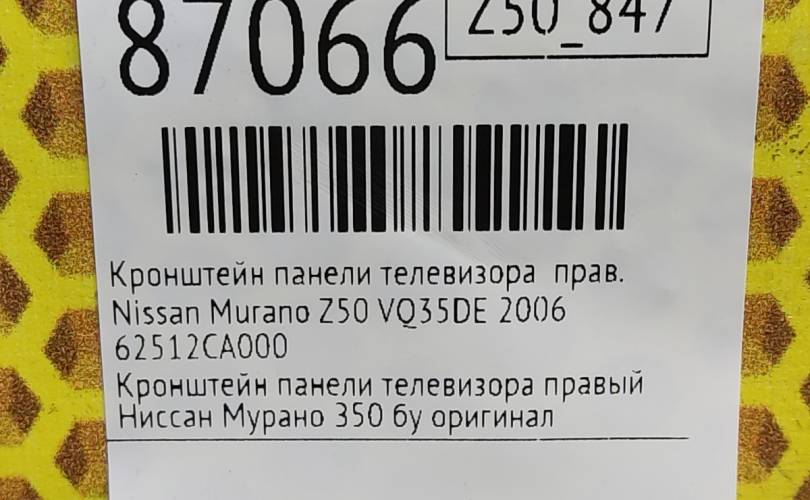 Кронштейн панели телевизора Nissan Murano 2006 62512CA000 Z50 VQ35DE, правый