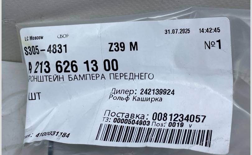 Кронштейн передней панели Mercedes-Benz E-Class 2023 A2136261300 W213 D264920, правый