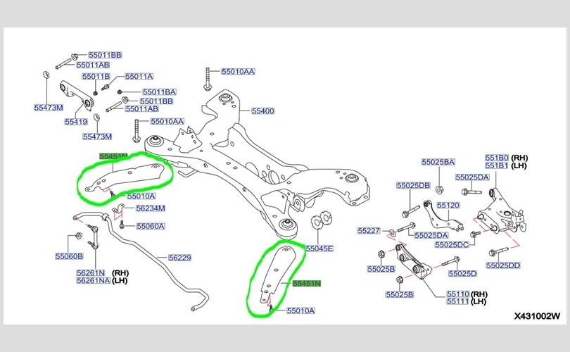 Кронштейн подрамника Infiniti QX50 2018 554515NA0A J55 KR20 *012800A*, задний
