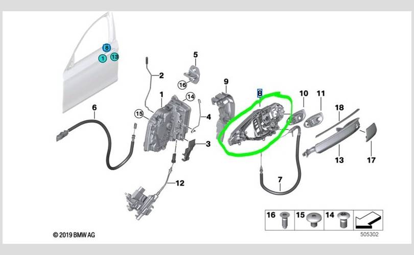Кронштейн ручки двери BMW 7-series 2017 51217377241 G12 B57D30B, передний левый