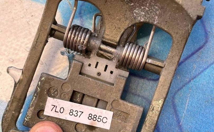 Дизель турбо, 7L0837885C / 7L0 837 885 C / 7L0837885E / 7L0 837 885 EМеханизм ручки открывания двери передней левой / Опора ручки двери / Опорный элемент / Корпус ручки дверикронштейн ручки