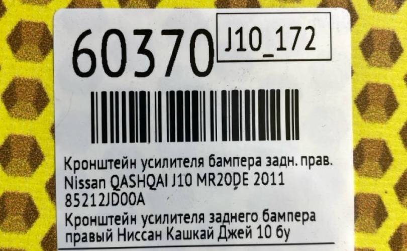 Кронштейн усилителя бампера Nissan QASHQAI 2011 85212JD00A J10 MR20DE, задний правый