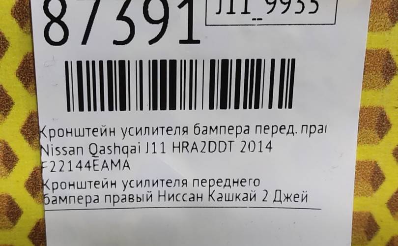 Кронштейн усилителя бампера Nissan Qashqai 2014 F22144EAMA J11 HRA2DDT, передний правый