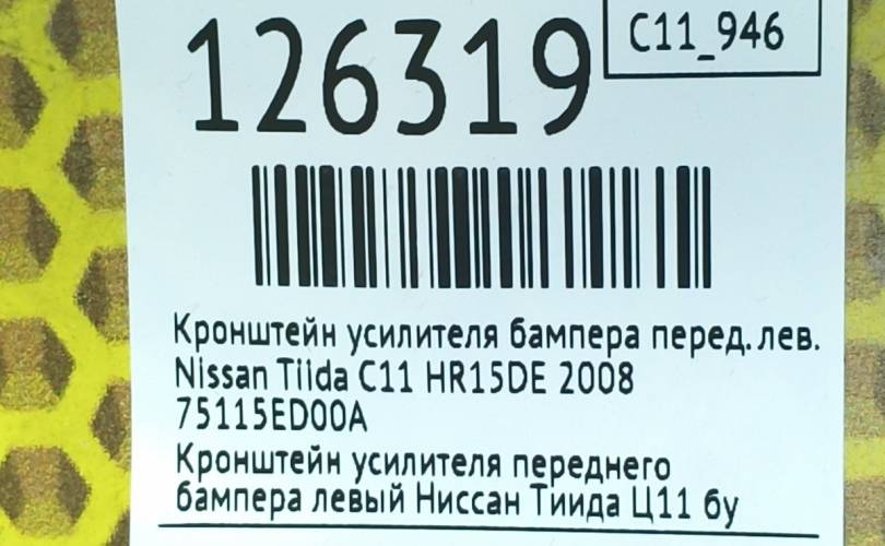 Кронштейн усилителя бампера Nissan Tiida 2008 75115ED00A C11 HR15DE, передний левый