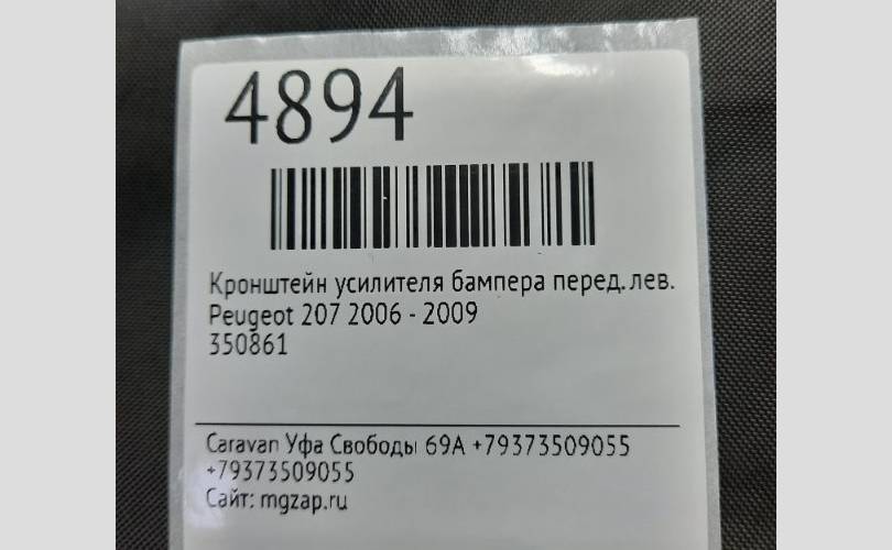 Кронштейн усилителя бампера Peugeot 207 2006 - 2009 350861, передний левый