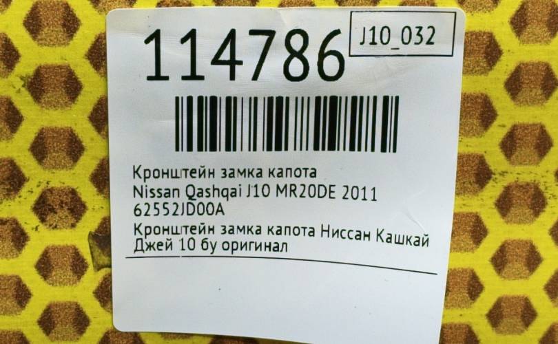 Кронштейн замка капота Nissan Qashqai 2011 62552JD00A J10 MR20DE