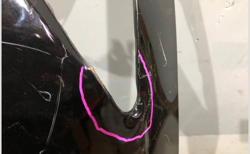 Крыло переднее левое Infinity Q50 V37 дорестайлинг ( Инфинити Q50 В37 ) Дефект: ремонтная, шпаклевка, вмятина, тычок.