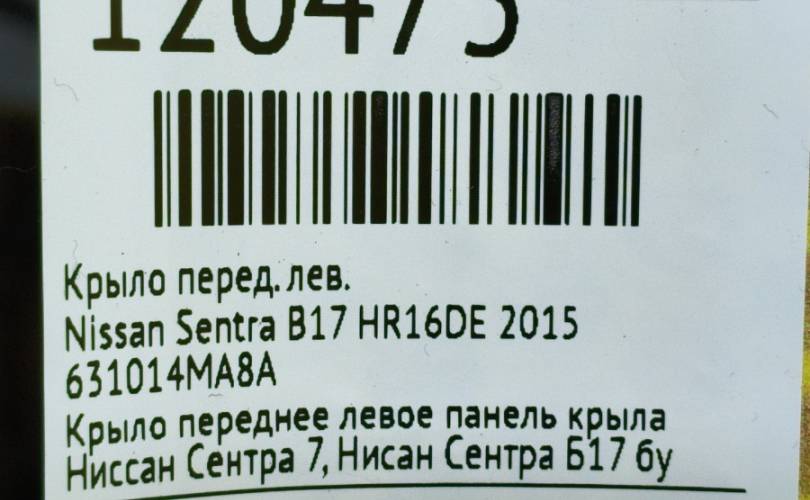 Крыло Nissan Sentra 2015 631014MA8A B17 HR16DE, переднее левое