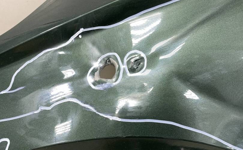 Сквозное отверстие,вмятины.