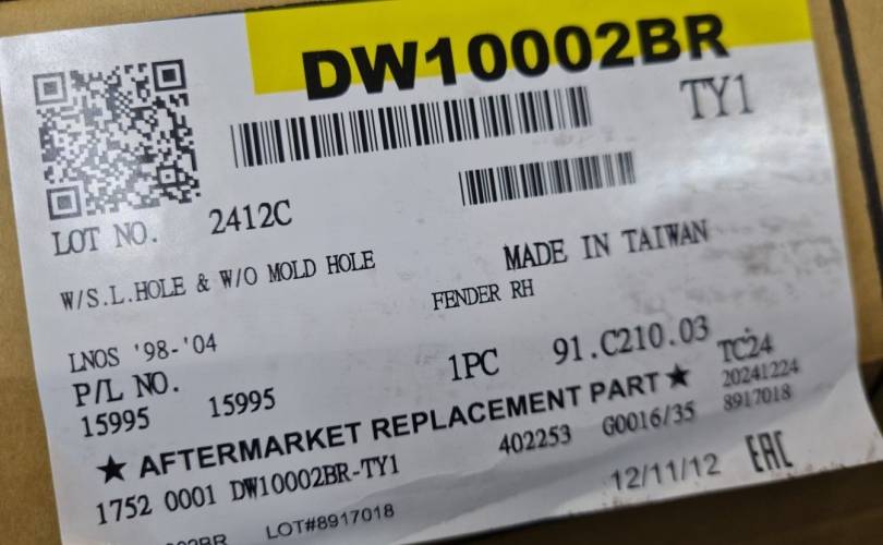 Крыло переднее правое для Chevrolet Lanos 2004-2010