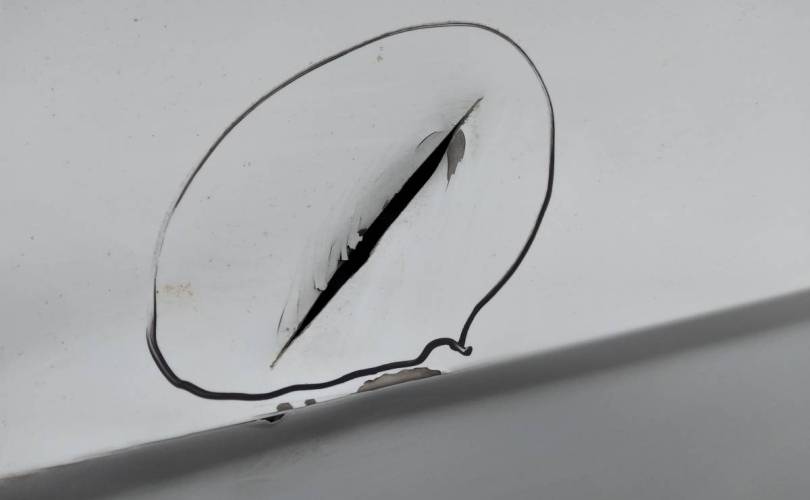 линию отреза уточнять у менеджера. вмятины. пробито.