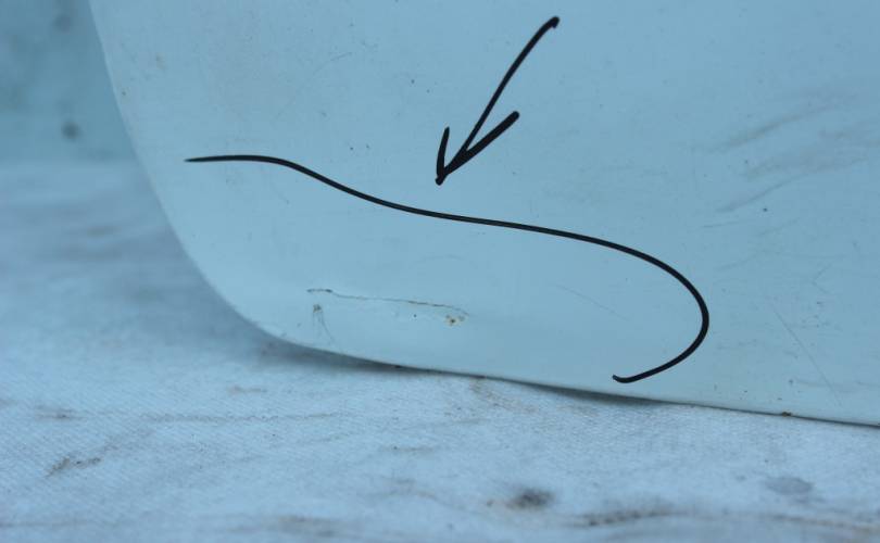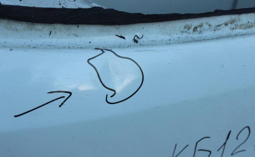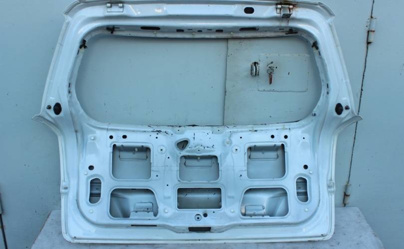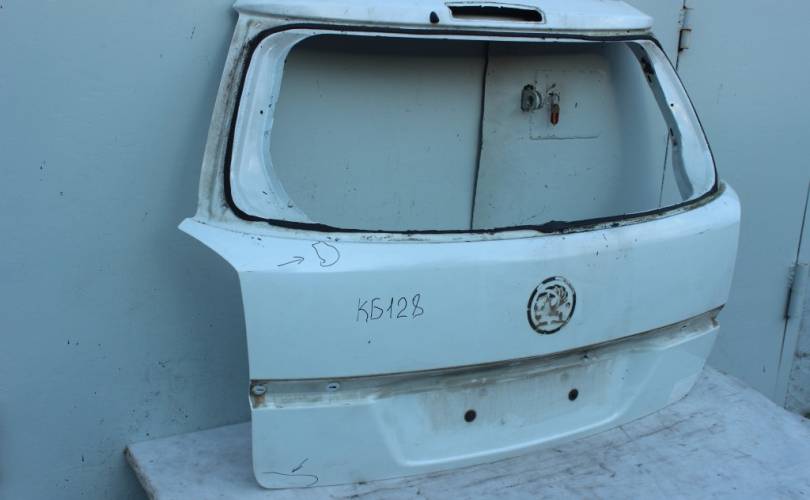 Крышка багажника голая (пятая дверь, хлопушка) без стекла!!!, б/у оригинал с мелкими дефектами: две небольших транспортировочных вмятины (на фото отмечены черным маркером). Цвет: белый. Подходит для автомобиля Opel Astra H (Опель Астра Аш, Астра Н) с 2004 по 2015 год выпуска в кузове универсал (вагон, караван).