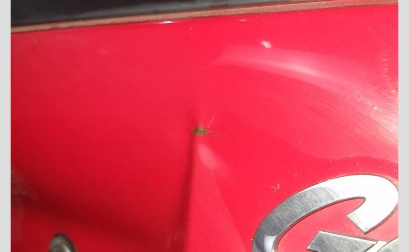 дифект обшивки, тычек со сколом справа, царапина снизу слева