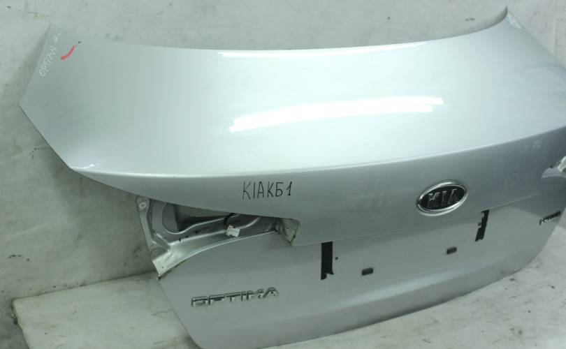 Крышка багажника в сборе, без фонарей, б/у оригинал в хорошем состоянии. В комплектацию входит: нижняя пластиковая накладка, эмблема, плафоны подсветки госномера, замок и кнопка открывания багажника. Цвет: серебристый металлик. Подходит для автомобиля Kia Optima III (Киа Оптима 3) дорестайлинг с 2010 по 2013 год выпуска.