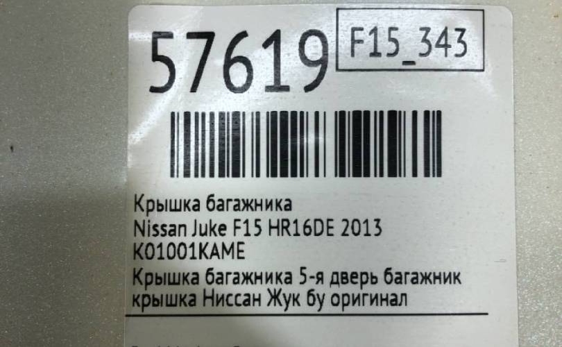 Крышка багажника Nissan Juke 2013 K01001KAME F15 HR16DE