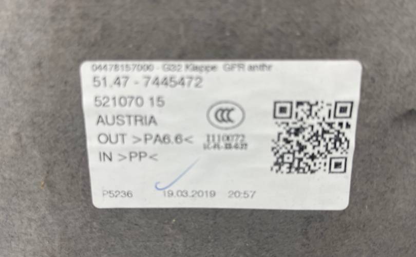 Крышка багажного отделения Bmw Gt 640D Xdrive 2019 51477445472 G32 B57D30B, левая