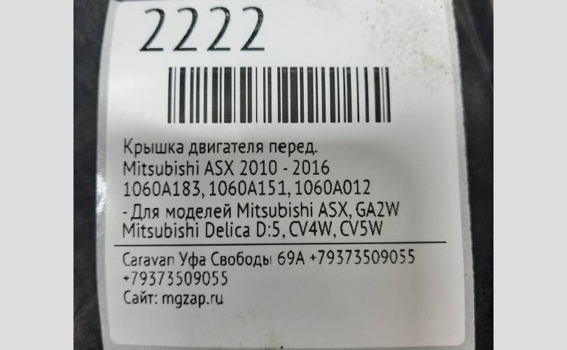 Крышка двигателя Mitsubishi ASX 2010 - 2016 1060A183, передняя
