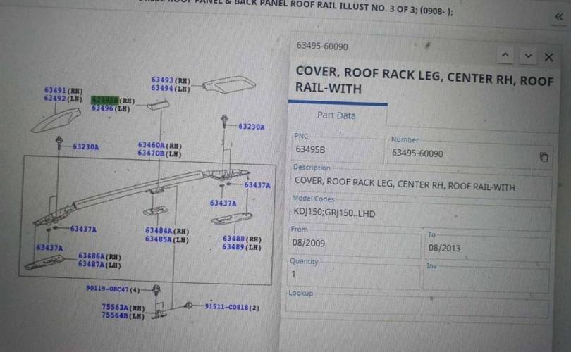 Накладка крепл. рейлинга прав средняя TOYOTA LAND CRUISER (150)-PRADO (2009>) 6349560090 63495-60090