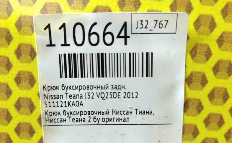 Крюк буксировочный Nissan Teana 2012 511121KA0A J32 VQ25DE, задний