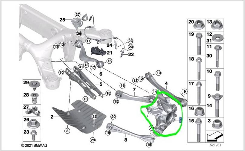 Кулак поворотный BMW 7-series 2017 33306865661 G12 B57D30B, задний левый