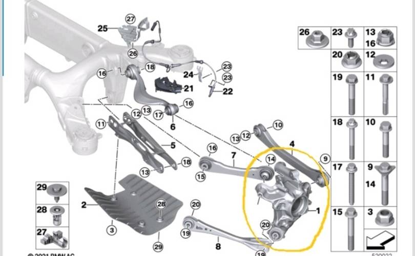 Кулак поворотный Bmw X3 2024 33306871027 G01, задний левый