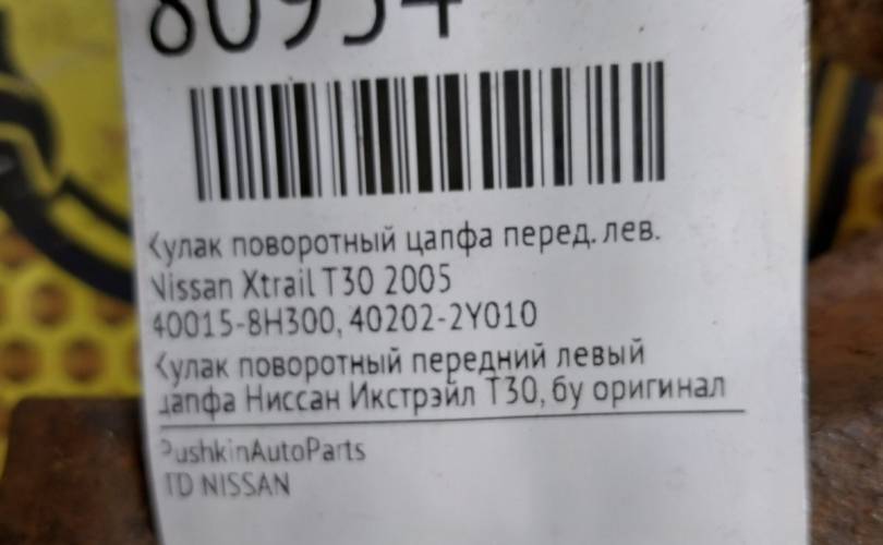 Кулак поворотный цапфа Nissan Xtrail 2005 400158H300 T30, передний левый