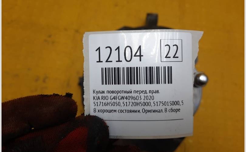Кулак поворотный Kia Rio 2020 51716H5050 G4FGW409603, передний правый