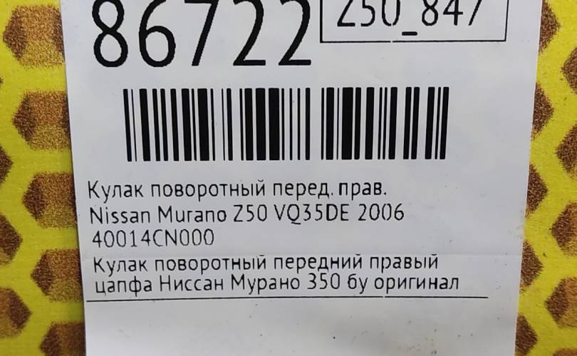Кулак поворотный Nissan Murano 2006 40014CN000 Z50 VQ35DE, передний правый