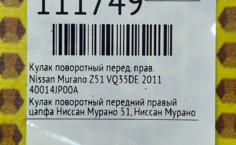 Кулак поворотный Nissan Murano 2011 40014JP00A Z51 VQ35DE, передний правый