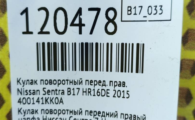 Кулак поворотный Nissan Sentra 2015 400141KK0A B17 HR16DE, передний правый