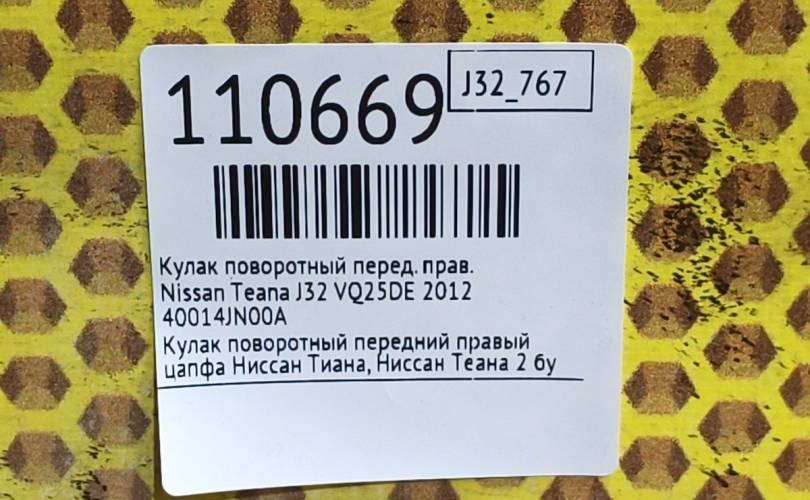 Кулак поворотный Nissan Teana 2012 40014JN00A J32 VQ25DE, передний правый