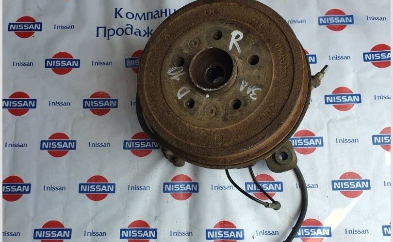 Кулак поворотный задний R Nissan Terrano D10 оригинал в сборе с барабаном тормозным, тросом ручника, колодками, датчиком ABS .