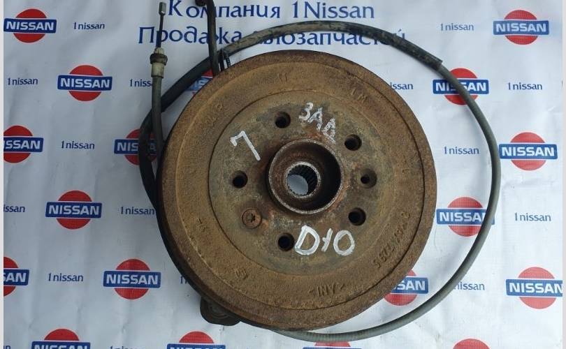 Кулак поворотный задний L Nissan Terrano D10 оригинал в сборе с барабаном тормозным, тросом ручника, колодками, датчиком ABS .