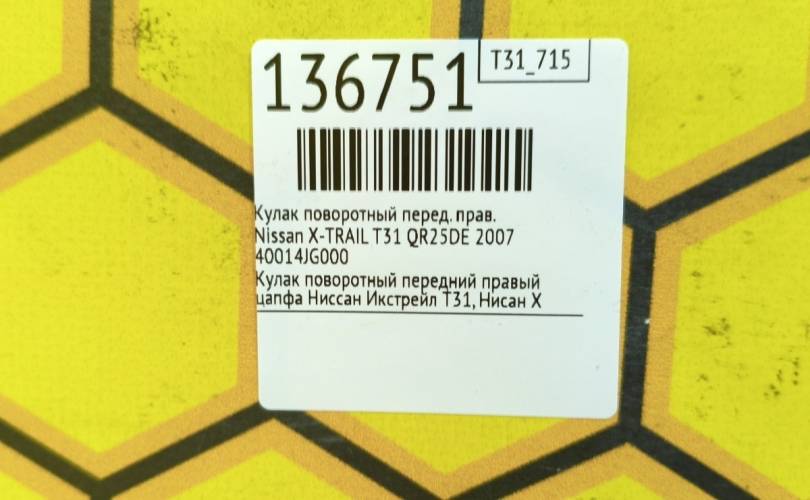 Кулак поворотный Nissan X-TRAIL 2007 40014JG000 T31 QR25DE, передний правый