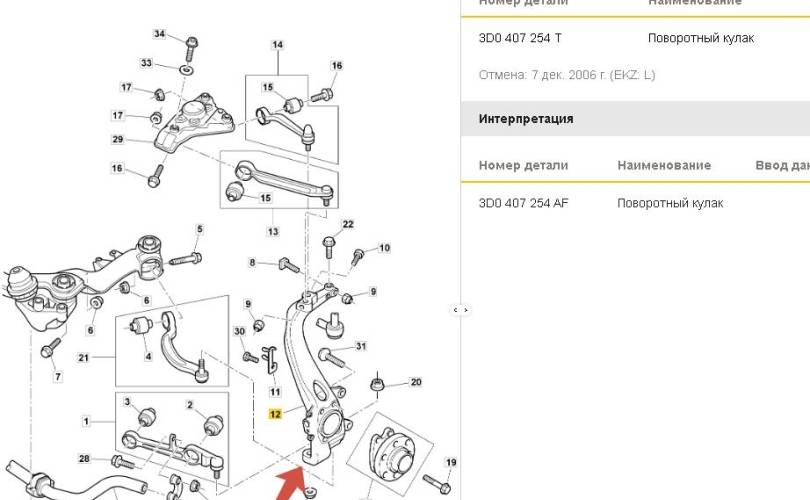 Бентли Bentley GT кулак поворотный правый чугун 3D0 407 254 T 3D0 407 254 AF 3D0407254T 3D0407254AF<